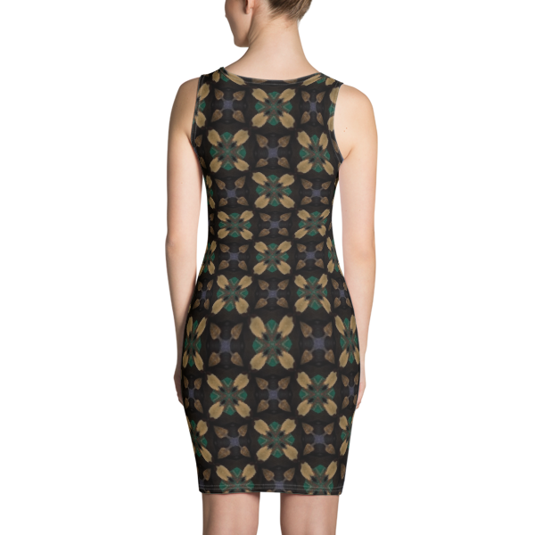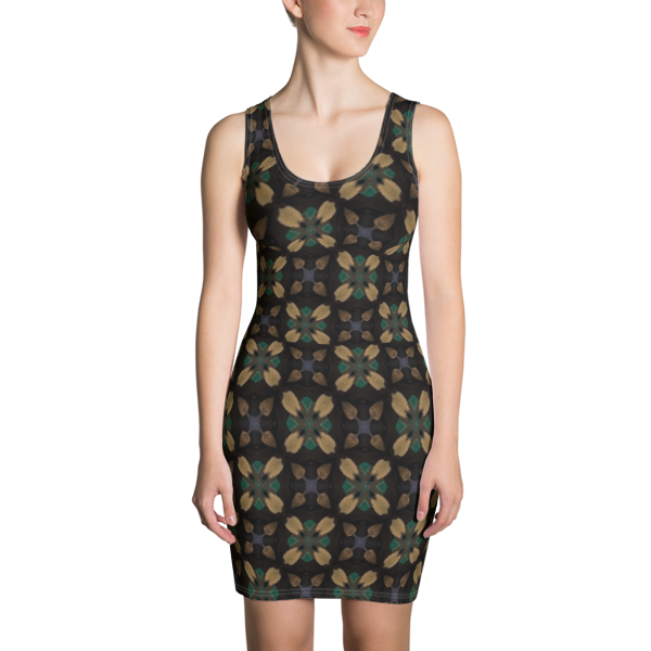 An abstract formal design for a beautiful woman who knows how to make a statement. With dark colors and patterns this dress isn't too flashy but still it shines. Every woman is beautiful but style helps you to feel more beautiful.